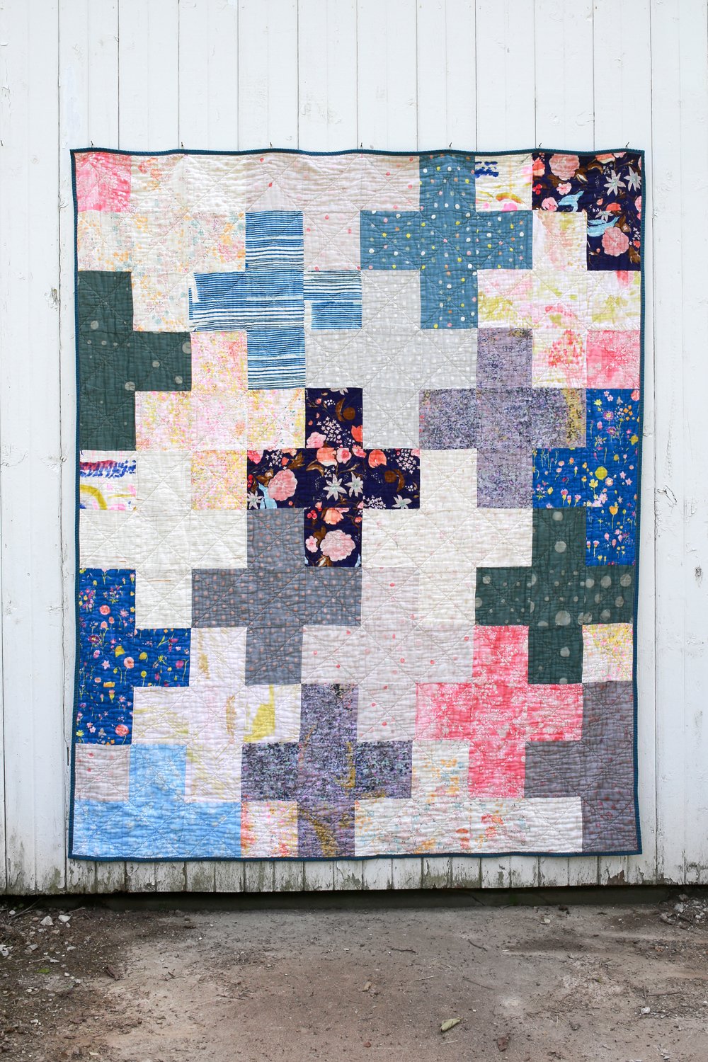 A modern plus quilt pattern using simple patchwork techniques. This stash busting pattern is perfect for that bundle of fat quarters or 1/2 yards you want to show off!