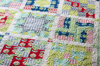 Create a beautiful sampler quilt while learning a variety of basic quilting techniques. This pattern will teach you to make half-square triangles, flying geese, quarter-square triangles, strip piecing and more!